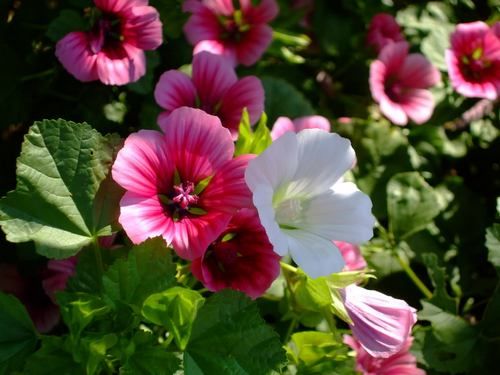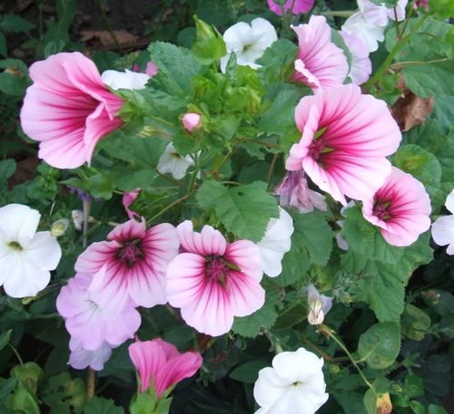 Виды и сорта: На пакетах с семенами может быть написано «М. трехнадрезная (М. trifida)» или указан сорт «Grandiflora». Высота 90 см, расстояние при посадке 45 см, цветет в июле-октябре. Смесь окрасок «Excelsior Mixed» дает растения с белыми, розовыми и малиновыми цветками, иногда с четкими прожилками на лепестках. Малопа обильно цветет и редко нуждается в опоре.