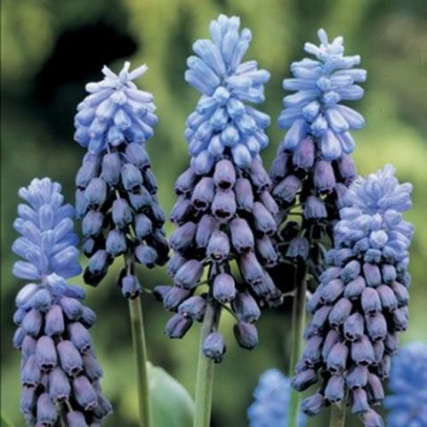 Виды и сорта: Наиболее распространен М. армянский (М. armeniacum) высотой 15-25 см, цветущий синими с белой каймой цветками длиной 0,5 см в апреле-мае. Луковицы сажают в сентябре-октябре на глубину 8 см и на расстоянии 10см. Листья остаются зелеными до увядания цветков. Сорта варьируют по высоте и окраске: махровый «Blue Spike» ниже ростом, у «Fantasy Creation» цветки серовато-синие. М. лазоревый (М. azureum) с ярко-голубыми цветками с темными полосками, у него есть белый карликовый сорт «Album». M. гроздевидный (М. botryoides) «Album» — еще один белоцветковый сорт. Несколько необычно для мускари выглядят М. хохолковый (М. comosum) «Plumosum» (30 см) с пышными фиолетовыми соцветиями, М. крупноплодный (М. macrocarpum) с желтыми с коричневой каймой цветками и М. амброзиевый (М. ambrosiacum), пурпурные цветки которого постепенно бледнеют и становятся сначала зеленоватыми, а затем кремовыми. Все перечисленные Виды и сорта цветут в мае. У М. Тубергена (М. tubergenianum) в верхней части соцветия бледно-, а в нижней — темно-синие цветки.