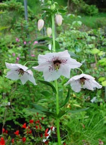 Необычное растение для полутенистого участка с влажной почвой. Идеальное месторасположение для него — на торфяной почве поддеревьями. Поникающие плоские или блюдцевидные цветки и ланцетовидные листья расположены в верхней части стебля. «Лепестки» цветков могут быть гофрированными, на них часто бывают пятна. Луковицы высаживают в октябре на глубину 10 см.