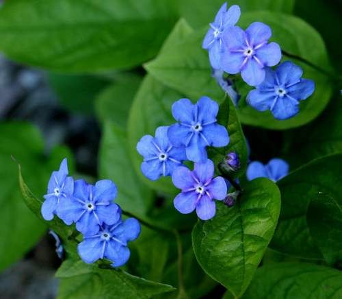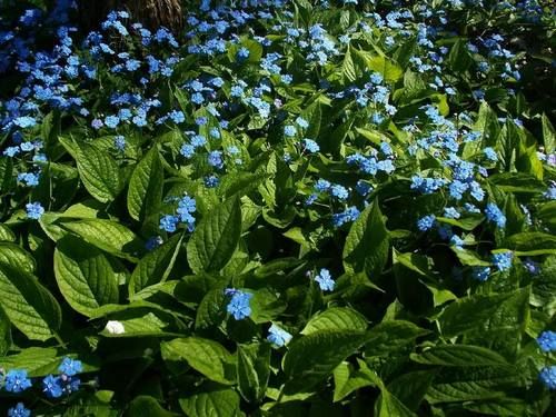 Цветет весной белыми или голубыми цветками, похожими на цветки незабудки. Цветки собраны в рыхлые соцветия, листья зимуют. Предпочитает плодородную почву, хорошо растет под кустами или деревьями. При посадке в почву вносят торф, садовый компост или листовой перегной, весной почву вокруг растения мульчируют.