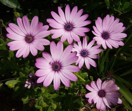 Виды и сорта: При соблюдении требований к почве и освещенности гибридные сорта (30-60 см) обильно цветут с июня по октябрь соцветиями диаметром 5-8 см. Первым гибридом с ложковидными белыми сверху и голубыми снизу «лепестками» был О. «Whirligig»; такая же форма «лепестков» у сортов «Pink Whirls» и «Cannington John». К сортам с обычными «лепестками» относятся «Dwarf Salmon» с ярко-оранжевыми соцветиями и «Gaiety», у которого соцветия с черной серединкой достигают 5 см в диаметре, «Ink Spot» (темная серединка) и «Langtrees» (розовый). Гибриды «Starshine» и «Potpourri» достигают 30 см в высоту, у сортов «Silver Sparkler» и «Gweek» пестрая листва. Сорта «Port Wine» и «Tresco Purple» с пурпурными соцветиями, сорт «Buttermilk» — с желтыми. Морозостойкий многолетний О. приятный (О. jucundum) высотой 30 см цветет розовыми или пурпурными соцветиями с золотистой серединкой в июне-сентябре. Карликовые сорта «Compactum» и «Compactum Blackthorn» (темно-пурпурные) высотой 15 см выращивают в альпинарии.