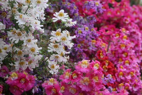 Один из самых экзотических клумбовых однолетников. Разноцветные цветки испещрены полосами и пятнами и похожи на цветки миниатюрных орхидей. Цветков бывает очень много, они возвышаются над светло-зелеными перисторассеченными листьями. Выращивают на защищенном месте, верхушки побегов для лучшего ветвления прищипывают.