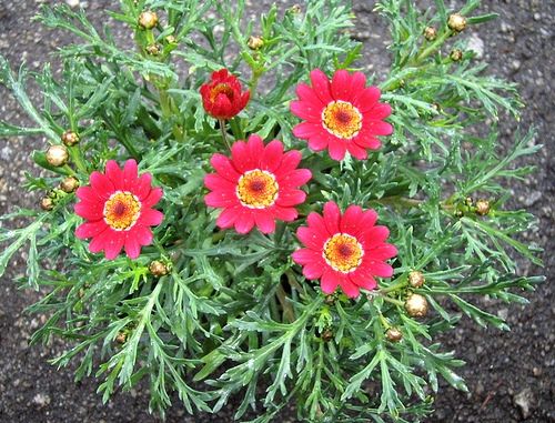 Это теплолюбивый многолетник, его каждый год размножают черенкованием. Цветет с конца июня по сентябрь, ромашковидные соцветия достигают в диаметре 5 см, листья перистые. Растения часто формируют в виде деревца.