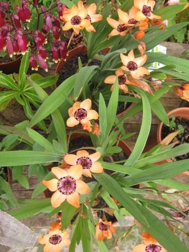 Виды и сорта: С. трехцветный (S. tricolor) продается в смеси окрасок, цветет звездчатыми цветками диаметром 5 см в мае-июне; высота 20-45 см. В районах с мягкой зимой клубнелуковицы сажают в ноябре на глубину 8 см. В смеси бывают однотонные (оранжевые, желтые и т. п.) или двуцветные цветки с четким черным кольцом, отделяющим цвета «лепестков» от окраски зева. Карликовый С. изящный (S. elegans) не превышает в высоту 15 см.