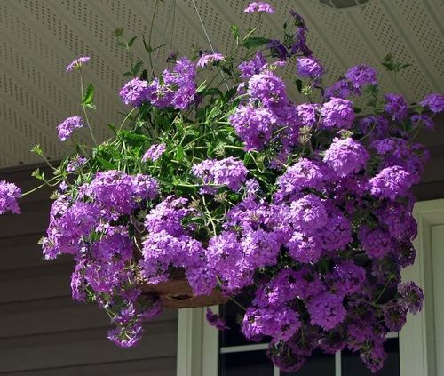 Виды и сорта: Однолетние сорта В. гибридной (V. hybrida) высотой 15-30 см цветут в июле-сентябре цветками диаметром 1-2,5 см, собранными в 5-8-сантиметровые зонтиковидные соцветия. Сорта «Novalis», «Derby» и «Showtime» образуют пряморастущие кустистые растения с цветками разнообразной окраски. Для контейнеров и клумб больше подходят кустистые «Romance Mixed» (смесь окрасок) и замечательный сорт «Imagination» (фиолетово-голубой). Лучшие карликовые сорта — «Sparkle Mixed» и «Dwarf Compact Mixed». У очень обильно цветущего сорта «Tapien» стелющиеся стебли длиной до 60 см. Одноцветные цветки у сортов «Adonis Blue» (голубой), «Peaches and Cream» (розовые цветки меняют окраску на кремовую), «Silver Anne» (розовые цветки меняют окраску на белую), «Sissingnurst» (розовый), «Lawrence Johnston» (красный), «Blue Lagoon» (голубой) и др. Ярким пятном украсят клумбу сорта «Blaze» и «Sandy Scarlet» (красные), «Sissinghurst» (розовый). Некоторые сорта размножают не семенами, а черенками. Две многолетние вербены — В. копьевидная (V. hastata) высотой 1,5 м и В. «Homestead Purple» высотой 30 см — зимуют в открытом грунте. В. буэносайресскую (V. bonariensis) (1,5 м) на зиму нужно прикрывать слоем мульчи. Все эти многолетники цветут с июня по октябрь голубыми или лиловыми цветками. Получившие высокую оценку сорта В. прекрасной (V. speciosa) «Imagination» (фиолетово-синий) и «Romance Mixed» сильно разрастаются.
