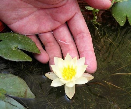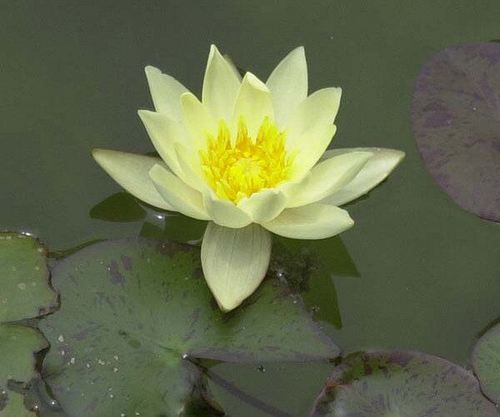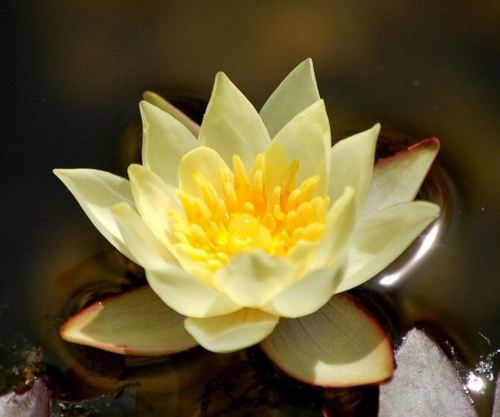 Лепестки бледно-желтые, тычинки ярко-желтые. Самая маленькая из желтоцветковых кувшинок и, возможно, наиболее популярная из карликовых. Цветет в течение всего лета приподнимающимися над водой звездчатыми цветками. Листья овальные, темно-зеленые, с красно-коричневым удлиненными пятнами. Не зимостойка, требует укрытия при низких температурах. Хорошо подходит для небольших баков и контейнеров.