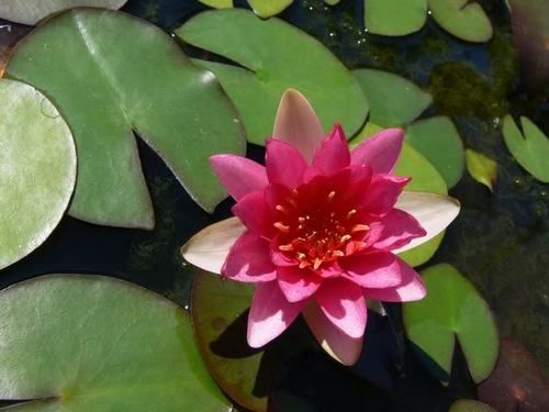 Кувшинка селекции Латур-Марлиака 1895 г. Лепестки темно-розовые, со временем темнеют, тычинки оранжевые. Цветок располагается над водой, 6-8 см в диаметре. Листья овальные, с красновато-коричневыми пятнами и волнистым краем, снизу пурпурные. Обильно цветет, но не часто. Как все сорта К. Лейдекера, подходит для мини-пруда.