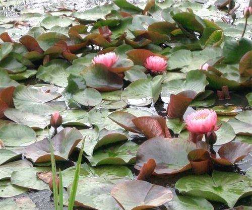 Характеристика вида: Глубина посадки 40 - 80 см, диаметр покрываемой листьями поверхности 1,2 - 1,5 м, площадь покрытия 10,5 - 18 м2, диаметр цветка 15 см.