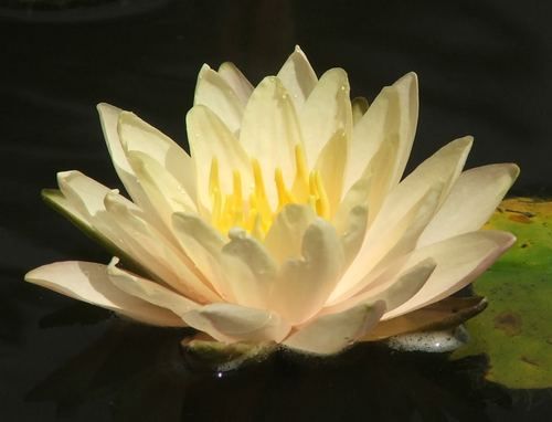 Кувшинка селекции Кирка Строна (США) 1996 г. Лепестки от бледно-желтого до светло-розовый цвета, узкие, остроконечные, тычинки ярко желтые. Форма цветка звездовидная, открытая. Цветок расположен около 10-15 см над уровнем воды, размер цветка 10-15 см. Листья овальные, оливкового цвета с коричневыми пятнами, нижняя сторона листа с красными точками,размер листа до 20 см в диаметре. Сорт пока редкий в продаже. Требует простора.