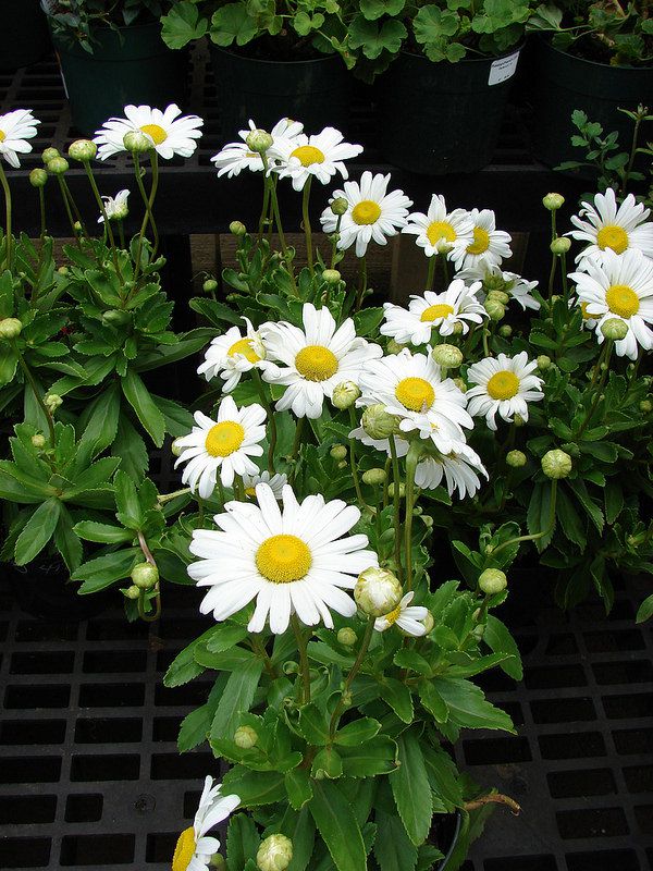 Крупные соцветия с белыми «лепестками» и желтой серединкой могут быть простыми, «полумахровыми» и «махровыми». Каждые два-три года кусты делят, в мае почву возле растений мульчируют, осенью стебли срезают на уровне земли.