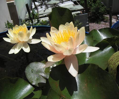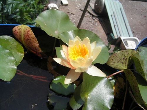 Кувшинка селекции Латур-Марлиака 1910 г. Расцветка цветока от желтого до абрикосового к центру, цветы стоят над поверхностью воды. Диаметр цветка 13-15 см. Листья овальные, темно-зеленый, обратная сторона с красно-коричневыми пятнами(мраморная), край листа чуть выше воды или немного изогнут, диаметр листа 18 см. Сорту нужно много солнца и теплой воды. Подходит для резервуаров и контейнеров на балконе или мини-прудов.