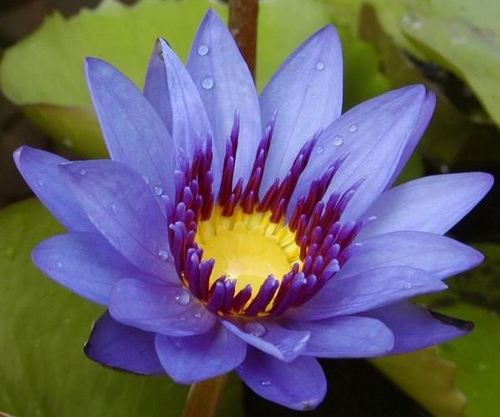 Кувшинка селекции Джорджа Принга 1941 г. Цветок фиолетово-синий, звездовидной формы, диаметр 20-25 см. Соцветия высокие. Листья круглые, зеленые до 30 см в диаметре. Край листа волнистый и зубчатый.Очень хороший сорт с обильным цветением и разрастанием, подходит для небольших прудов.