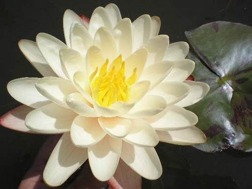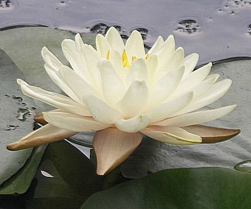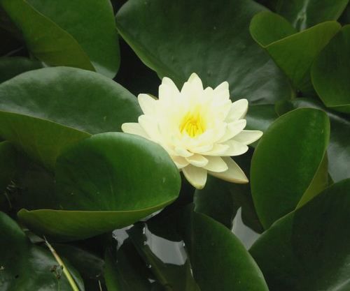Кувшинка селекции Кирка Строна 1997 г. Цветок от желтого до почти белого цвета, густомахровый, 8-10 см в диаметре. Листья почти круглые с перекрывающимся разрезом, ярко зеленые, 12-16 см в диаметре. Хороший сорт для небольших прудов.