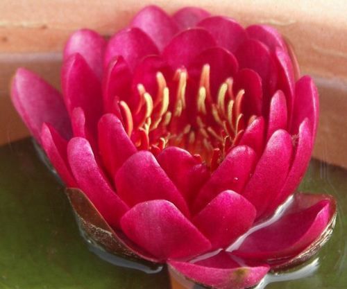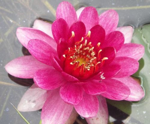 Кувшинка селекции Перри Слокума 1997 г. Цветок темно-красный к краю становится светлее, чашевидной формы, 8 см в диаметре. Иногда цветоносы расплагаются в воде. Листья темно-зеленые, круглые, разрез закрытый, диаметр листа 20 см. Не обильноцветущая.