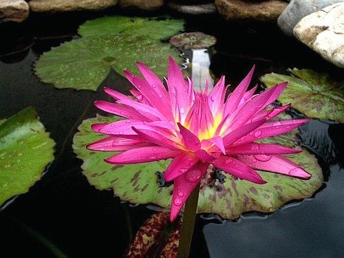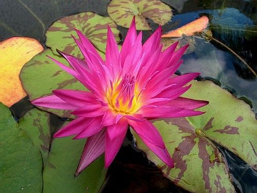 Происхождение - Флорида. Высокие соцветия, цветок ярко-розовый, чашевидной формы, 10-15 см в диаметре. Листья круглые, зеленые с большим количеством коричневых пятен, до 30 см в диаметре. Край листа волнистый. Сорт занимает много места, вид для больших прудов.