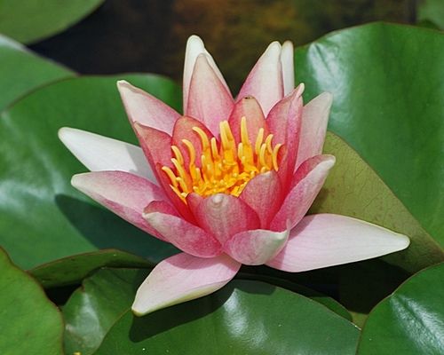 Кувшинка селекции питомника Латур-Марлиака 1993 г. Цветок от темно-красного в середине до розового, почти белого, к краю, чашевидной формы, 12 см в диаметре, цветок расположен чуть выше поверхности воды. Листья округлой формы, темно-зеленые, разрез закрытый, около 16 см в диаметре. Подходит для мини-водоемов, пока редкая в продаже.