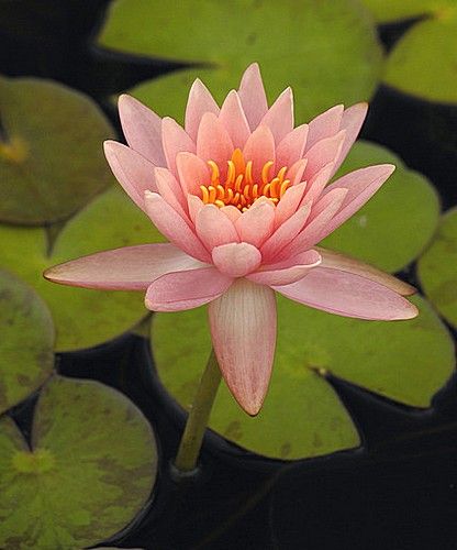 Кувшинка селекции Кирка Строна 1997 г. Цветок от бледно-желтого до светло-розового цвета, 10-13 см в диаметре, цветок находится около 10-15 см над водой. Листья почти круглые, 10-18 см в диаметре, оливкового цвета с коричневыми пятнами, разрез открытый. Сорт пока редко встречается в продаже.