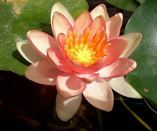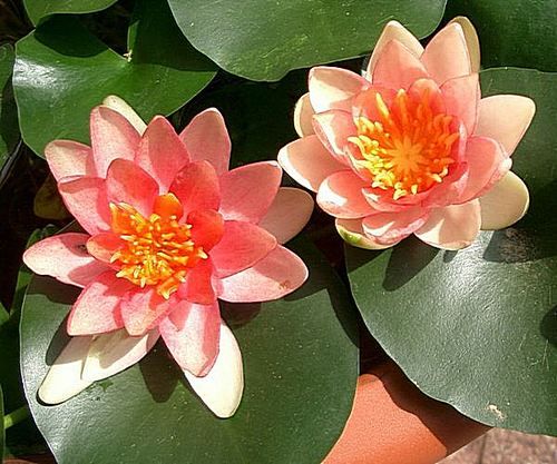 Кувшинка селекции Латур-Марлиака 1906 г. Цветок в середине медно-красный к краю розовый, со временем цветения светлеет, 6-8 см в диаметре. Листья овальные, верхняя и нижняя сторона серо-зеленого цвета, разрез стреловидный широкорасставленный, размер листа около 6-8 см. Растет медленно, требует много солнца, идеально подходит для водных мини-садов и мини-прудов, различных емкостей, легко переносит вынос из помещения на открытый воздух.