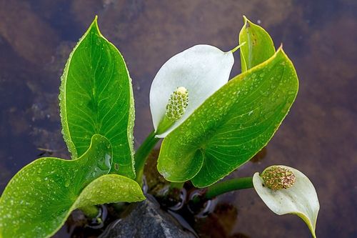 У Б. болотного (С. palustris) длинные мясистые корневища. Если высадить его на солнечном месте в спокойной воде, то его блестящие сердцевидные листья шириной до 20 см полностью закроют берега пруда, поэтому его рекомендуют высаживать в садовых прудах с жестким покрытием. В мае-июне появляются мелкие соцветия-початки с белым покрывалом, похожие на соцветия зантедескии, но значительно уступающие им по размеру. В конце лета образуются гроздья эффектных ярко-красных ягод. Высота растения 15-20 см, высаживают на глубину 5-10 см.