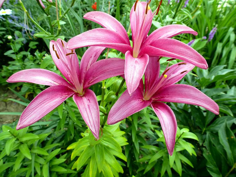 Вырастить лилии на своём участке не сложно, если знать и выполнять орпеделённые требования по уходу за ними. Во-первых, лилии предпочитают плодородные рыхлые почвы, так как могут расти на одном месте около 5 лет. Не выносят глинистых и песчаных почв, не терпят залива и застоя воды, поэтому сразу необходимо позаботиться о хорошем дренаже и составе почвы на месте их произрастания. За некоторое время они образуют гнезда из луковиц разного возраста и величины. Перед выкопкой необходимо стебли у цветов срезать, а выкопанные луковицы внимательно осмотреть, обмыть проточной водой, продезинфецировать в растворе марганцовки (5 г на 10 л воды 20 минут) и просушить в тени. Если Вы не сразу будете их высаживать в другое место, то можно хранить в темном месте в ящике. Луковицы нужно накрыть влажным мхом или мешковиной, затем высаживать в подходящее место сада. Корни нужно укоротить перед посадкой, подрезая до длины 5-10 см. Не забудьте на дно лунки посыпать крупный песок, потом выложить луковицы на расстоянии 20 см друг от друга, опятьпосыпать их песком, только потом землей. Луковицы хорошо укоренятся, если Вы не забудете их поливать первое время.
