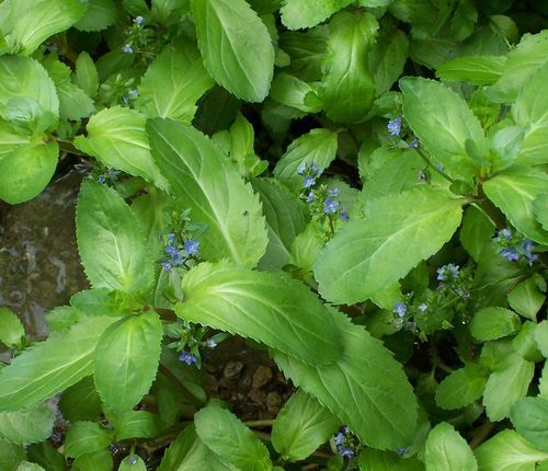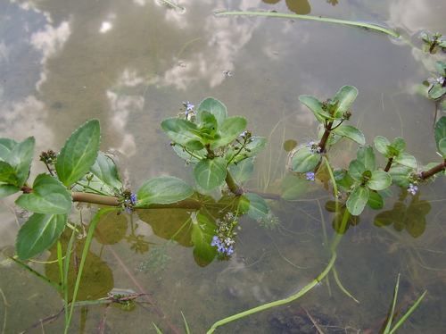 Из многочисленных видов этого крупного рода травянистых растений в воде обитает В. поручейная (V. beccabunga) — низкорослое растение с ползучими стеблями и блестящими оливково-зелеными листьями. Достигает 15-20 см в высоту, в течение всего лета обильно цветет ярко-голубыми с белым зевом цветками. Сажать ее следует на глубину не более 10 см. Веронику можно использовать для маскировки края пруда, но спустя год-два ее побеги так разрастаются, что их приходится укорачивать. Отрезанные верхушки нецветущих стеблей можно воткнуть в грязь, где они укоренятся. Если оставить веронику разрастаться по берегу пруда, она легко укореняется.