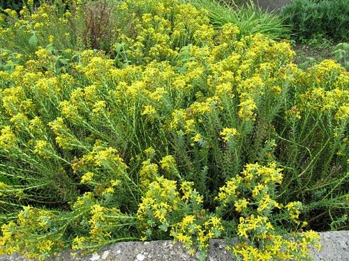 Этот представитель семейства сложноцветных родом из Южной Африки в последние годы завоевывает популярность, но распространенным еще не стал. Образует округлые кустики с привлекательными листьями, цветет желтыми соцветиями поздней весной. При благоприятных условиях роста соцветия могут покрывать весь кустик, но иногда цветение бывает слабым. Отцветшие соцветия удаляют, каждые несколько лет кустик сильно обрезают, чтобы он не разрастался.