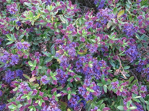 Виды и сорта: Один из лучших сортов для альпинария — Х. толстолистная (Н. pinguifolia) «Pagei». Кустик высотой около 20 см, листья серо-зеленые, цветет в мае-августе плотными кистями белых цветков. Другой распространенный сорт — Н. «Carl Teschner», стелющееся растение с темно-зелеными листьями на почти черных ветвях, цветет в июне-июле фиолетово-синими цветками с белым зевом. В эту же группу входят X. беловатая (Н. albicans) и X. пимелеевидная (Н. pimeleoides) «Quicksilver», обе с белыми цветками. Н. «Green Globe» образует шаровидный кустик высотой 20 см, покрытый мелкими, как у самшита, листьями. У X. эпакрисовидной (Н. epacridea) листья чешуевидные, душистые белые цветки появляются в июле. Н. «Boughton Dome» похожа на хвойное растение.