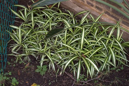 В последнее время интерес к клумбовым посадкам вырос настолько, что в качестве декоративных клумбовых стали использовать также некоторые комнатные растения, например, броваллию и хлорофитум. Последний, с его дуговидно изогнутыми листьями и тонкими побегами с молодыми розетками, особенно эффектно выглядит в высоком контейнере или в висячей корзине. Размножать хлорофитум можно несколькими способами, но надежнее всего купить в цветочном магазине растение в горшке, и перед высаживанием в открытый грунт закалить его. Высота 30-45 см. Высаживают как отдельно растущее растение.
