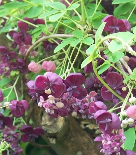 Виды и сорта: Наиболее распространена А. пятерная (A. quinata). Стебли достигают в длину 6 м. Каждый лист состоит из пяти овальных листочков. Верхушечные соцветия обычно из крошечных мужских цветков, ниже расположенные — из более крупных женских, цвета красного вина. При благоприятных условиях могут образоваться темно-лиловые плоды. Еще более мощная А. трехлистная (A. trifoliate), или А. лопастная (A. lobata), вырастает в высоту до 9 м. Листочки расположены по три, а не по пять, как у А. пятерной, цветки темно-лиловые, а не винно-красные. Иногда образуются фиолетовые плоды длиной около 10 см. А. пятилистная (A. pentaphylla) — гибрид двух вышеописанных видов.