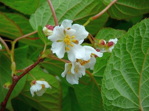 Актинидия китайская (Actinidia chinensis), или Актинидия вкусная (Actinidia deliciosa) самая теплолюбивая из актинидий, со стеблями длиной до 7 м и покрытыми красноватыми волосками сердцевидными листьями. В июле-августе она цветет душистыми кремовыми цветками, а потом на женских растениях образуются коричневые мохнатые ягоды, известные всем как киви.