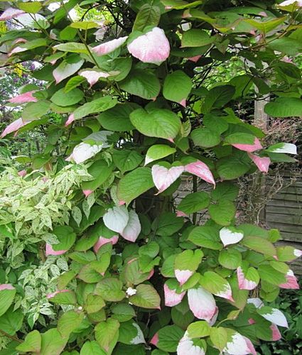 Актинидия полигама (Actinidia polygama) — более теплолюбива, чем ее родственники. Очень декоративна с пестрыми листьями, белыми большими ароматными цветами, со сравнительно большими — до 2,5 сантиметров в диаметре оранжевыми плодами. Они на вкус жгучие, словно перец, и становятся съедобными только после заморозков.
